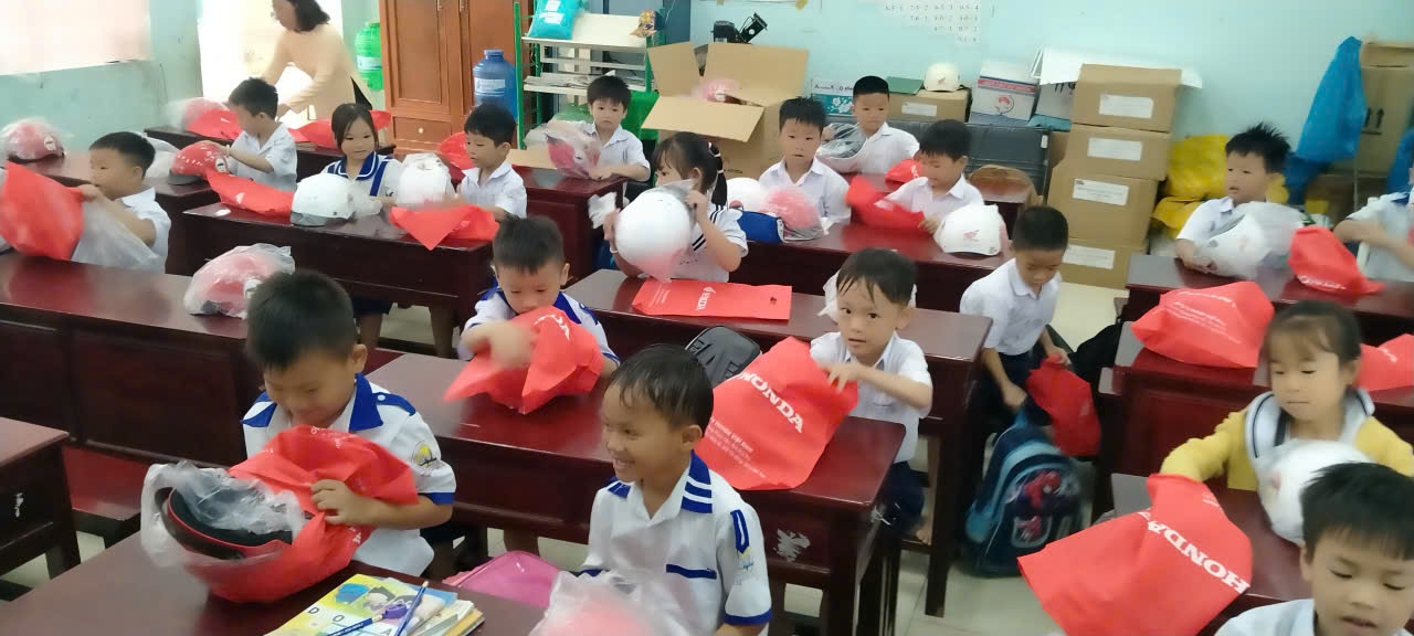 CÔNG TY XE MÁY HON DA TRAO TẶNG MŨ BẢO HIỂM CHO TẤT CẢ CÁC EM HỌC SINH CỦA TRƯỜNG TH VĨNH THUẬN 1