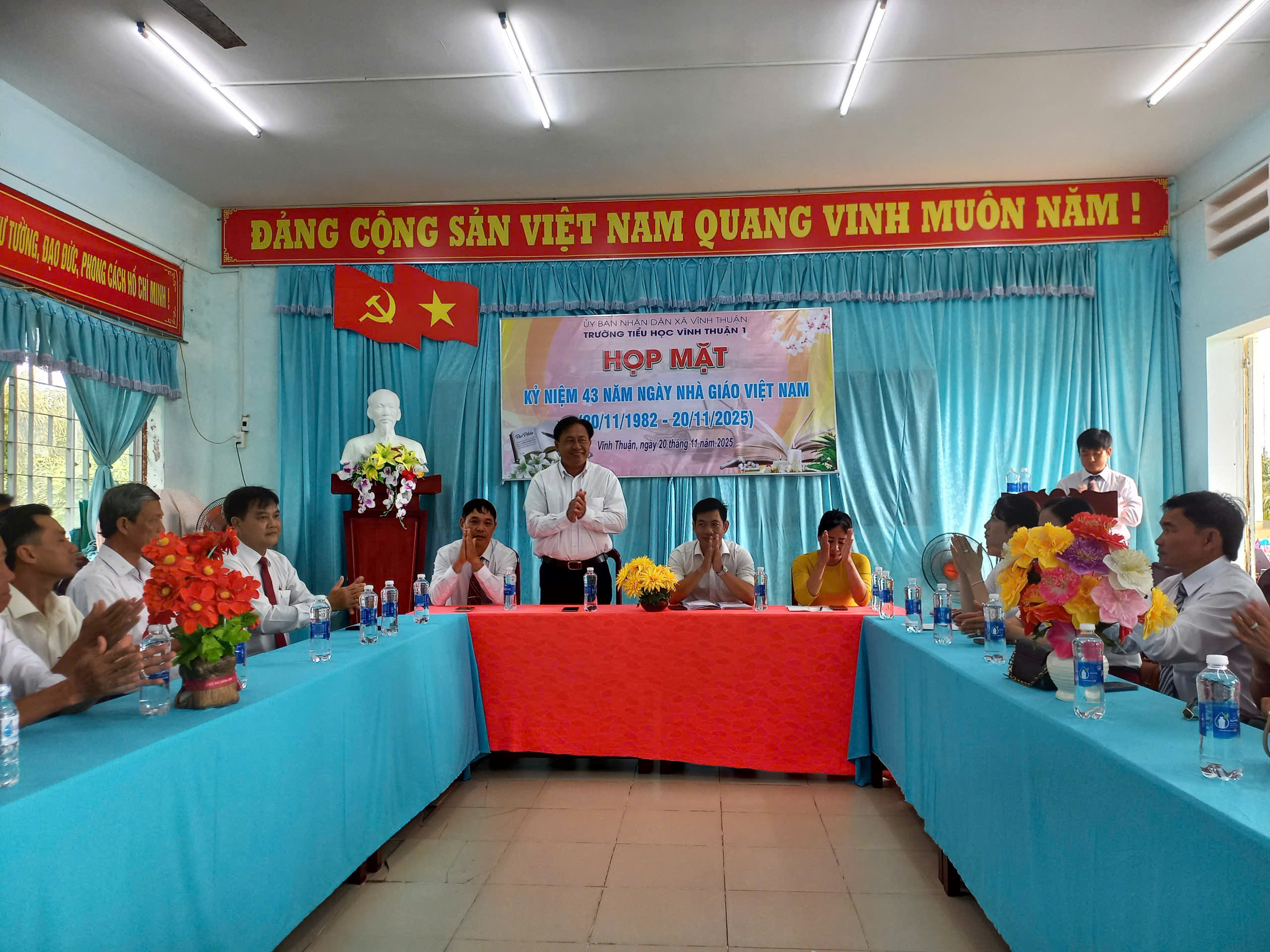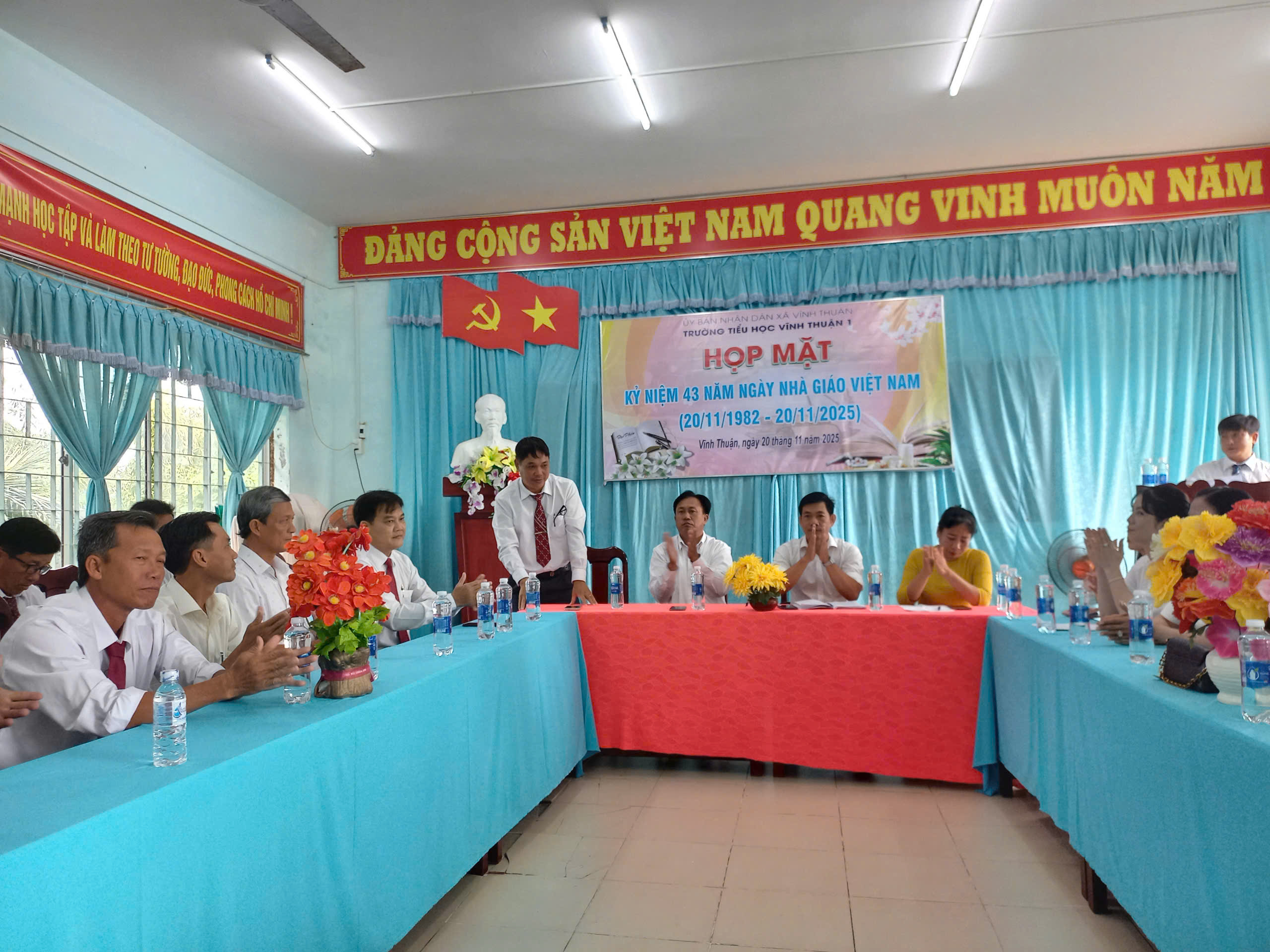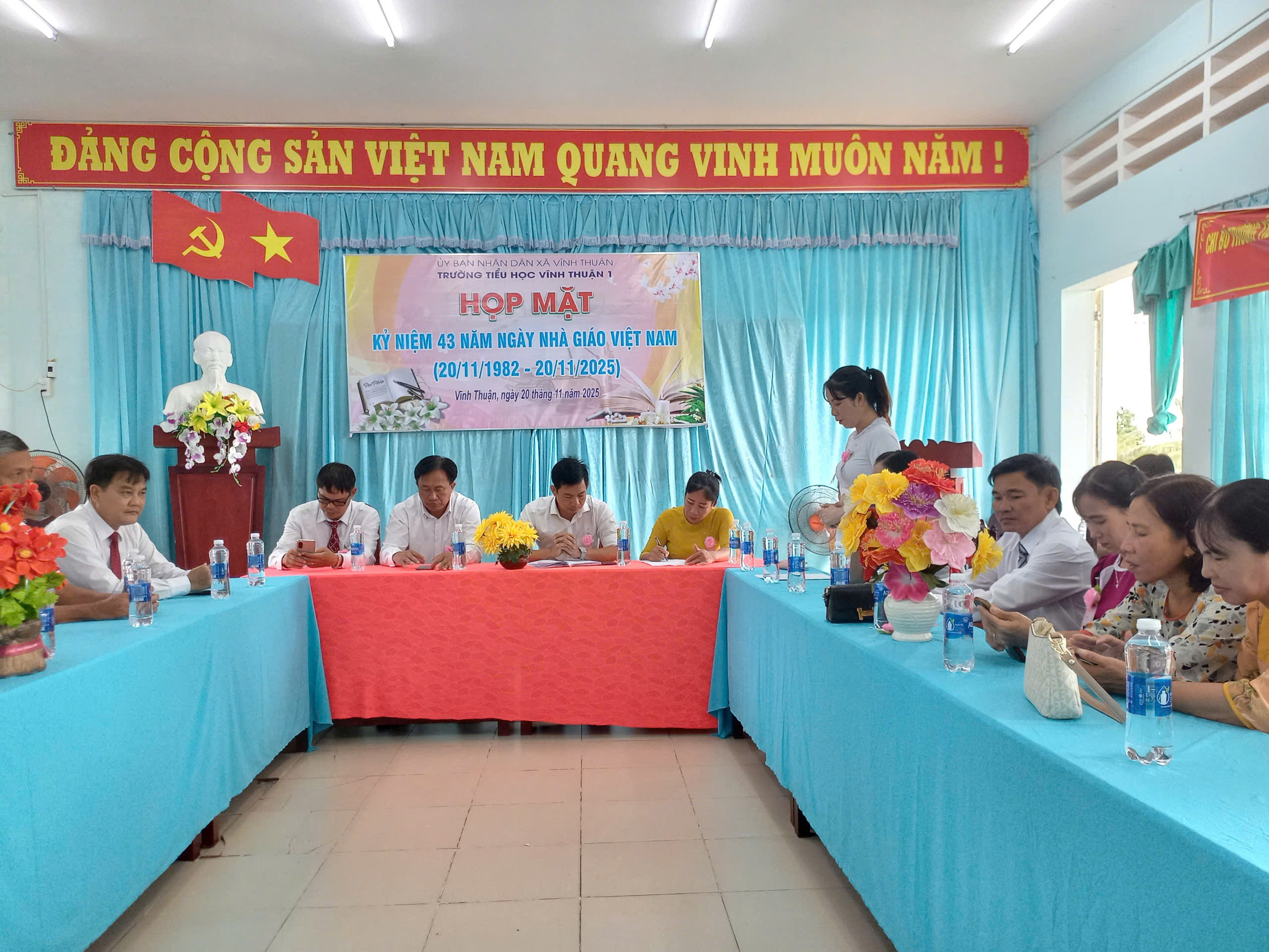 Hoà chung với khí thế tưng bừng, phấn khởi của ngành giáo dục cả nước kỉ niệm 43 năm ngày nhà giáo việt nam (20.11.1982 – 20.11.2025). Thực hiện kế hoạch năm học và được sự đồng ý của Đảng ủy xã Vĩnh Thuận. Hôm nay, ngày 20.11.2025 Trường Tiểu học Vĩnh Thuận 1 long trọng tổ chức buổi tọa đàm kỉ niệm 43 năm ngày nhà giáo Việt Nam.