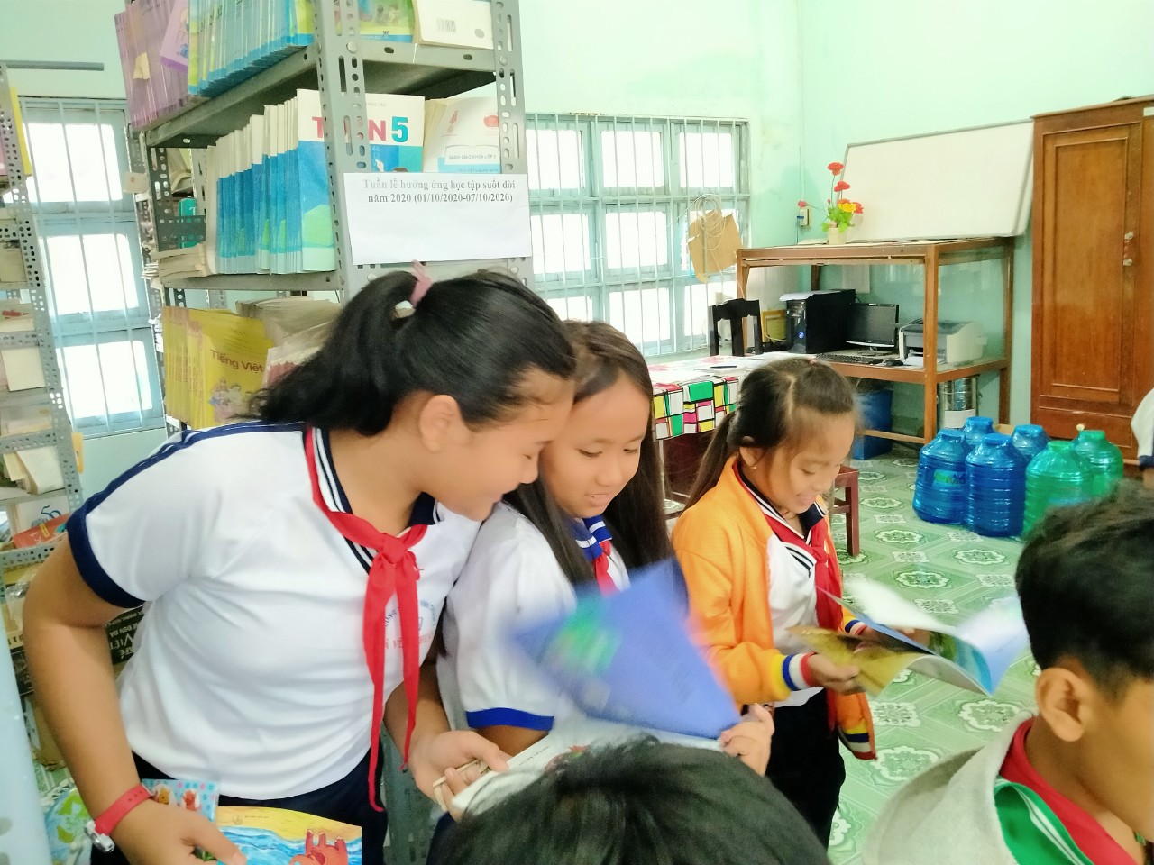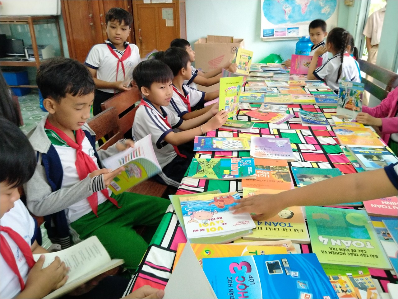 Tổ chức trưng bày, giới thiệu sách, thi kể chuyện sách về tấm gương học tập suốt đời của Bác Hồ. Xây dựng tủ sách lớp học (mỗi lớp học có nơi để sách, báo, tập chí,…). Tổ chức vệ sinh, sắp xếp thư viện ngăn nắp, khoa học.